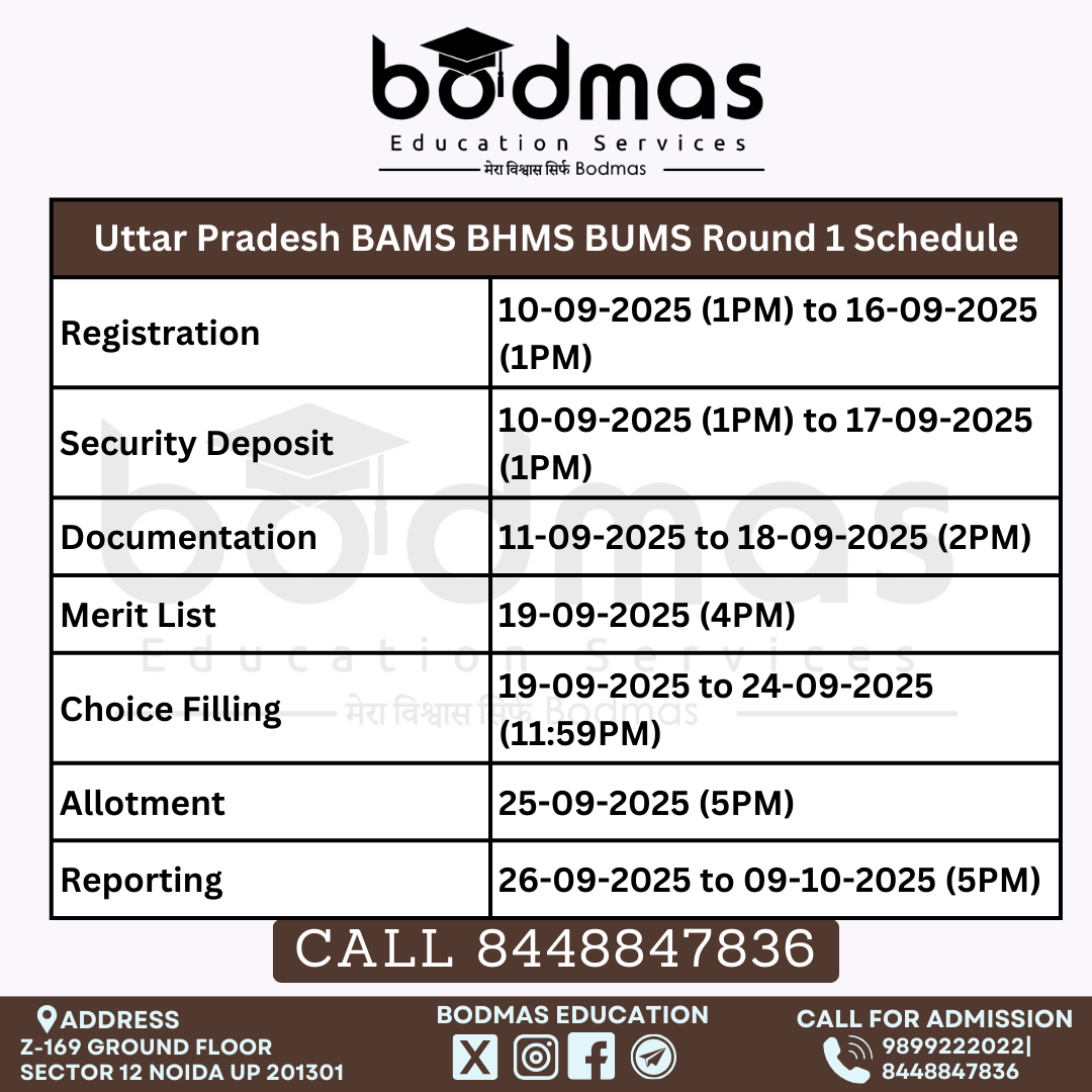 UP Ayush Round 1 Schedule 2025