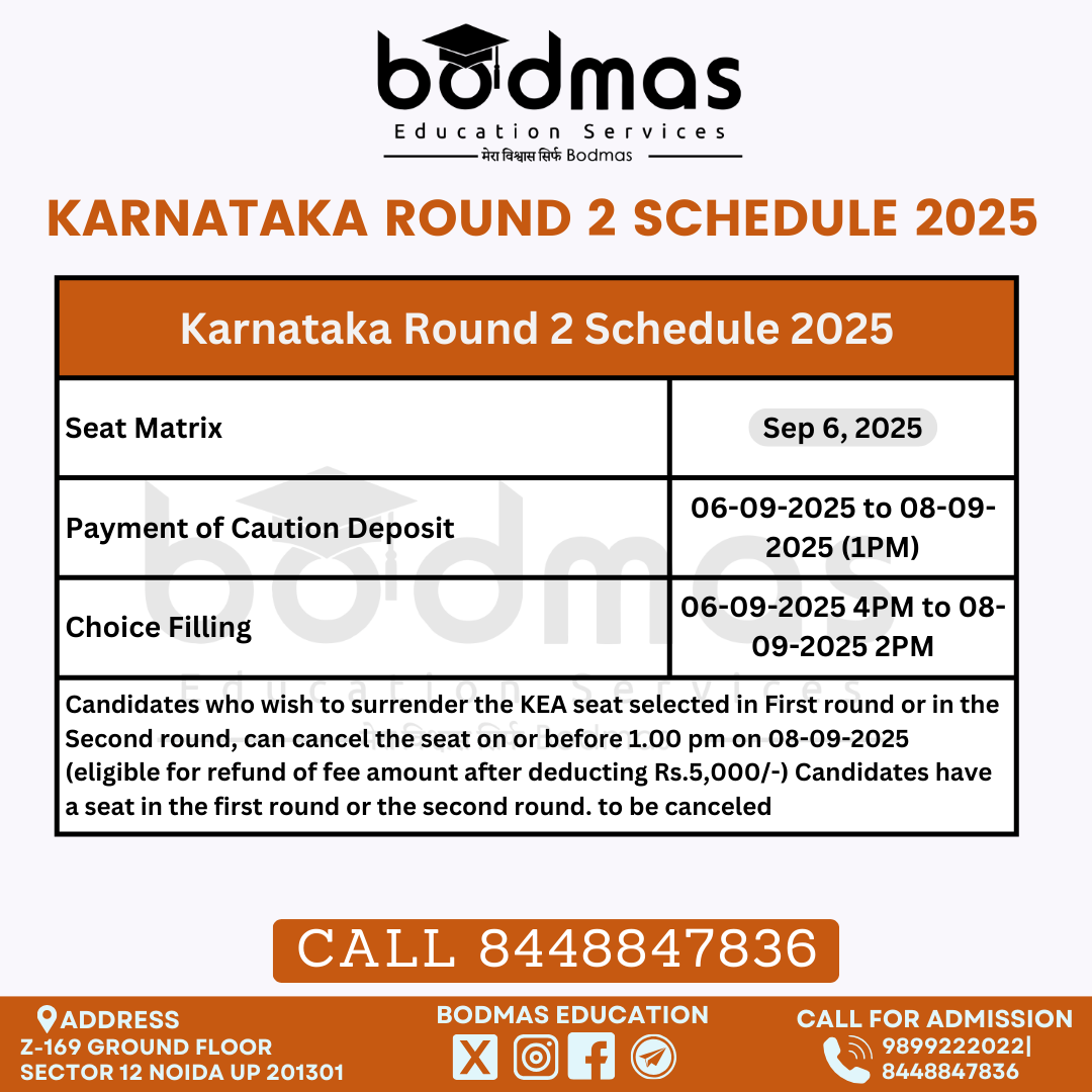 Karnataka Revised Round 2 Seat Matirx 2025
