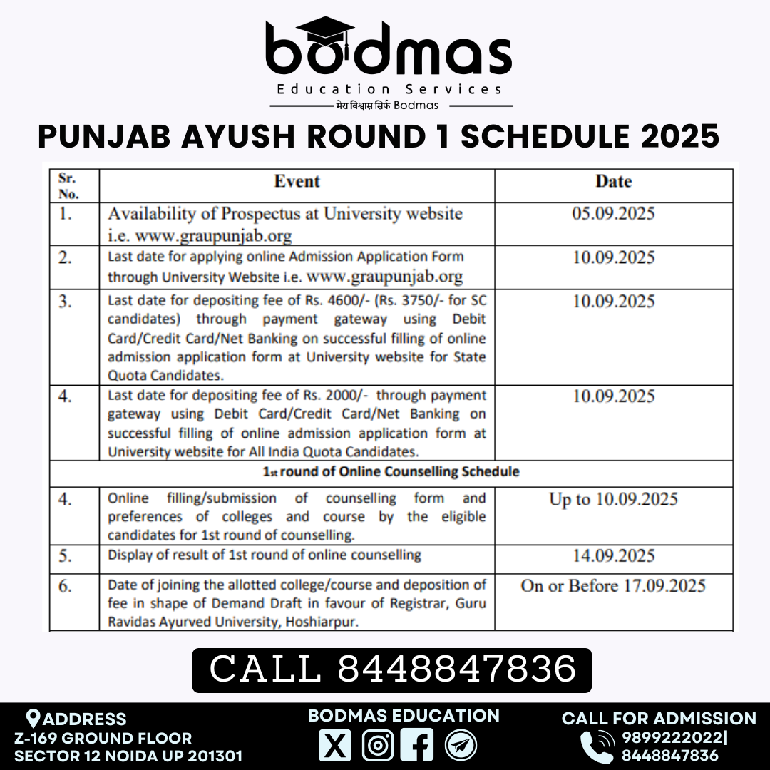 Punjab Ayush Round 1 Schedule 2025