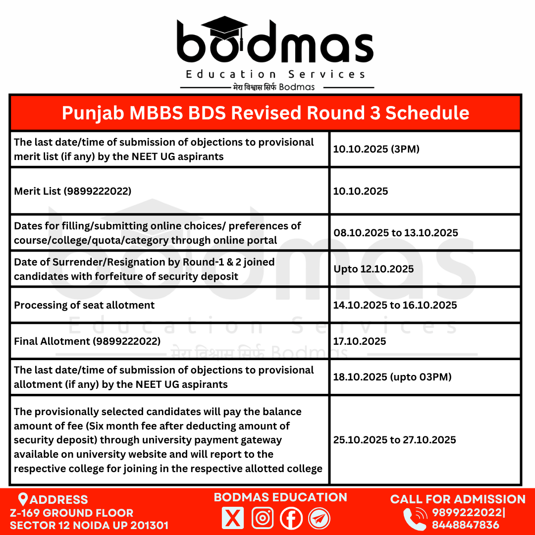 Uttar Pradesh MBBS BDS Round 3 Revised Schedule 2025